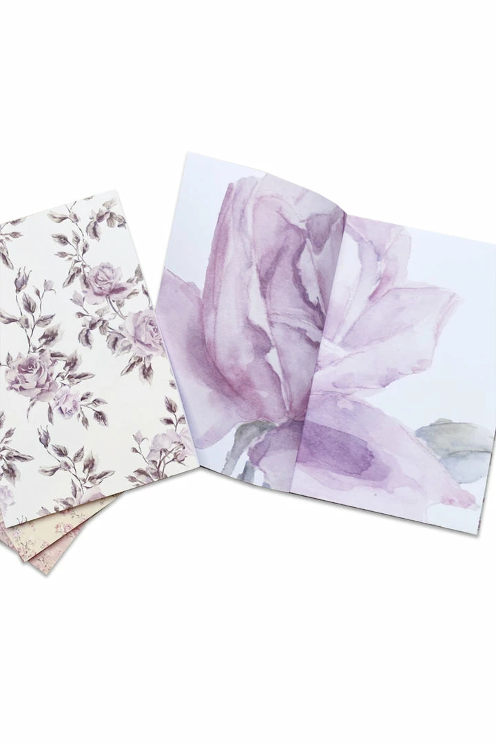 A set of 4 multi-print floral notebooks for when you’re feeling inspired. Each notebook has a rose watercolor print at the front followed by plain, unlined paper.