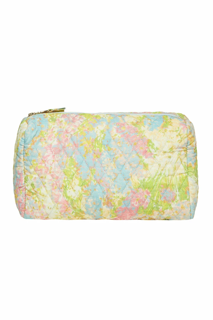Our Octavia Bag-in patchwork prints, is the perfect clutch or cosmetic purse. It’s quilted, soft and compact. Zip closure at top. Shown here in Multi.