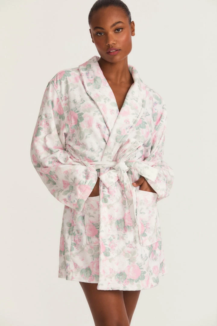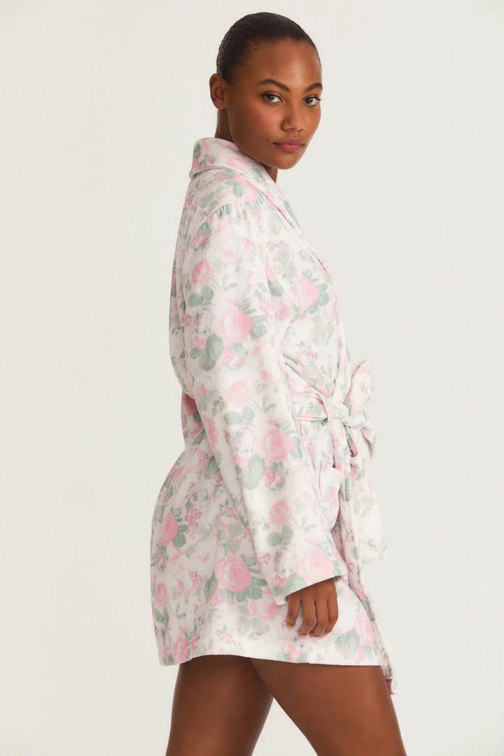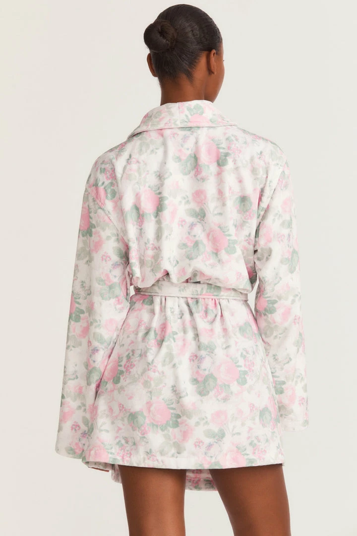 Throw on this super-soft, terry cloth Indie Robe for all the fresh floral feels. This robe features a tie and tie loops.